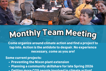 Join the monthly 350 Colorado Springs Team Meeting! Welcome to everyone! Connect with other organizers, support local campaigns and actions, skill-build, and help make sure that Colorado Springs is a robust part of the statewide climate movement. No experience necessary. Come as you are. Some of the stuff we’re working on Read more